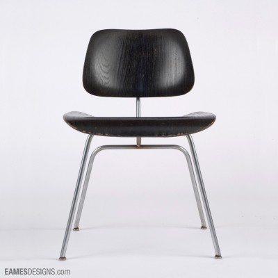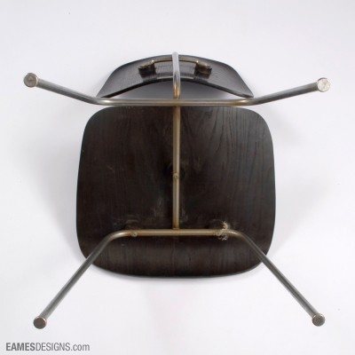 This is an excellent example of a 1952 DCM with its original black aniline dye. The Eames Office chose to dye the wood, instead of painting it, because of their commitment to honesty: What's wood should always be revealed as wood. With dye, the grain of the wood is expressed through the dark finish.