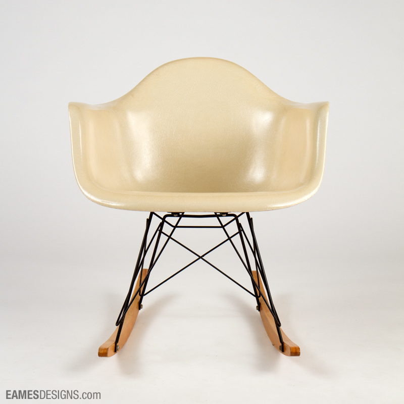 This parchment color rocker with its black base was purchased new in September 1959 by Sonya (Sonny) and Adrian Harris for $29.64, including sales tax.