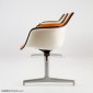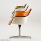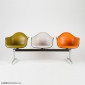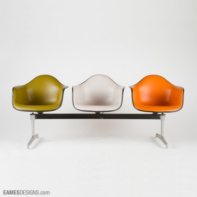 Eames tandem shell seating used plastic side and arm shells assembled to a base using a special cast aluminum spider.