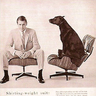 Lounge Chair and Ottoman in Lebow Men’s Suits ad, Vogue, 1956