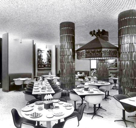 A great article about Alexander Girard's LA FONDA restaurant design, including photos of the original EAMES LA FONDA chairs, on site.